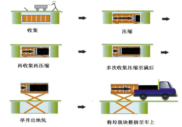 垃圾儲存、壓縮及寄存全部在地面以下,地面上沒有垃圾散落,對環(huán)境影響較??;垃圾壓縮后密度高,水份少,可避免汽車運輸中的垃圾散落、污水滴漏現(xiàn)象,避免二次污染;